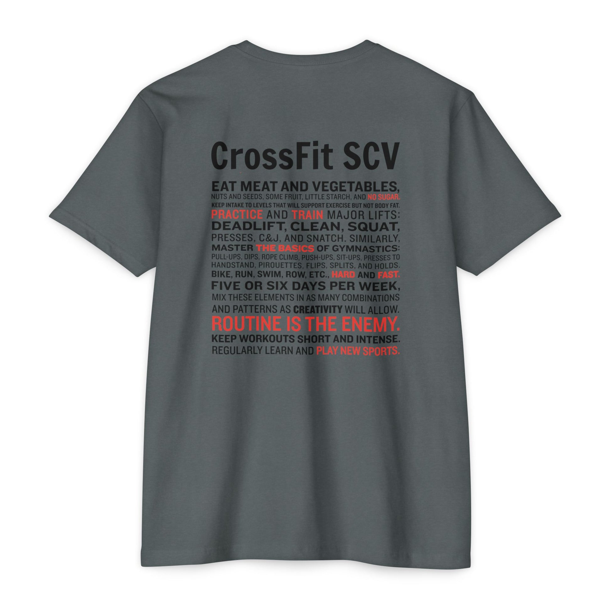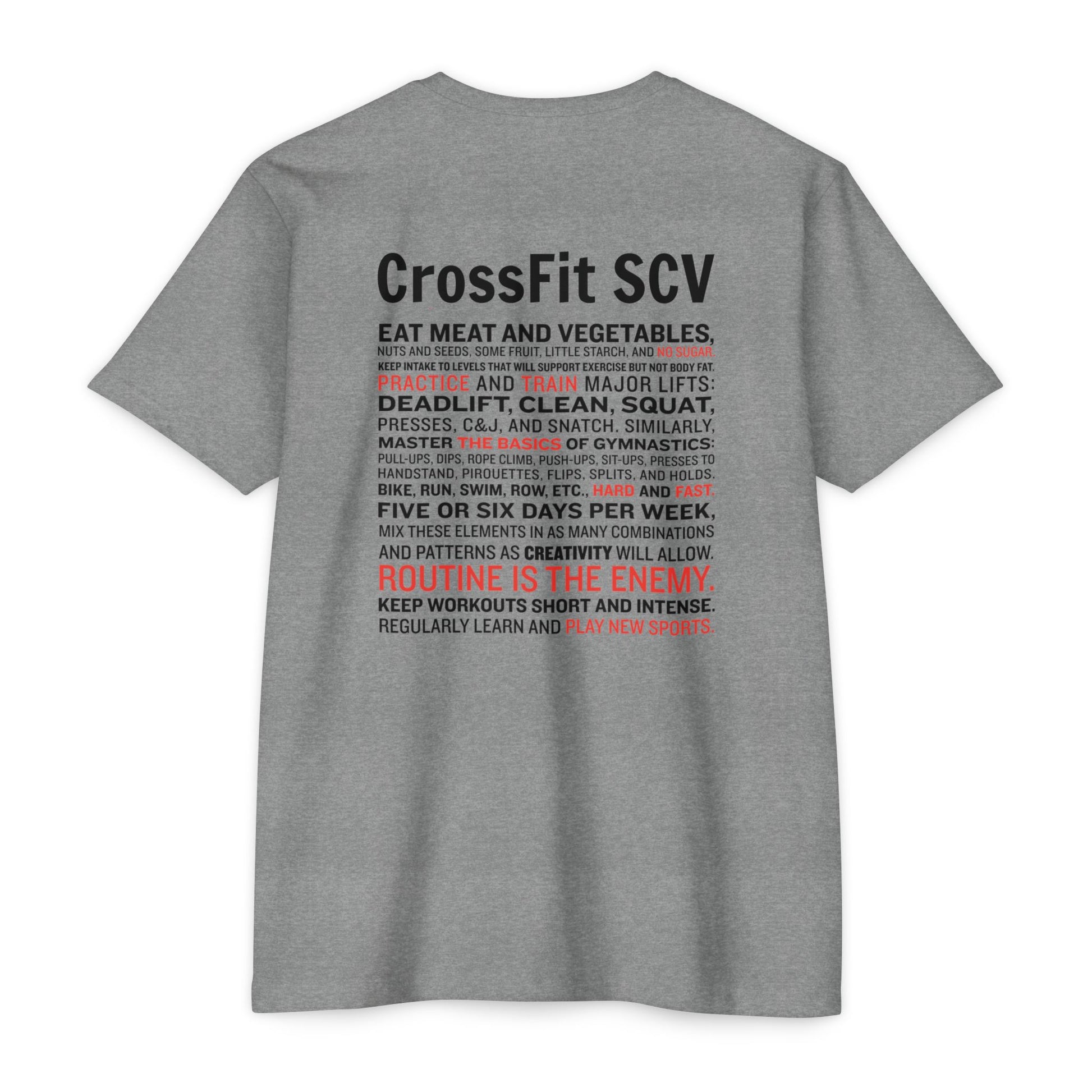 Lightweight, breathable, and built for movement — this tee moves with you from warm-ups to cooldowns. The soft combed cotton blend feels broken-in from the first wear, while the ribbed collar and shoulder tape keep lines clean after countless reps. Subtle front chest lettering gives a low-profile nod to the box, while the back print lays out the CrossFit creed in bold, motivational blocks. Wear it to class, to the lot, or on rest days when you want the same grit without the bulk.